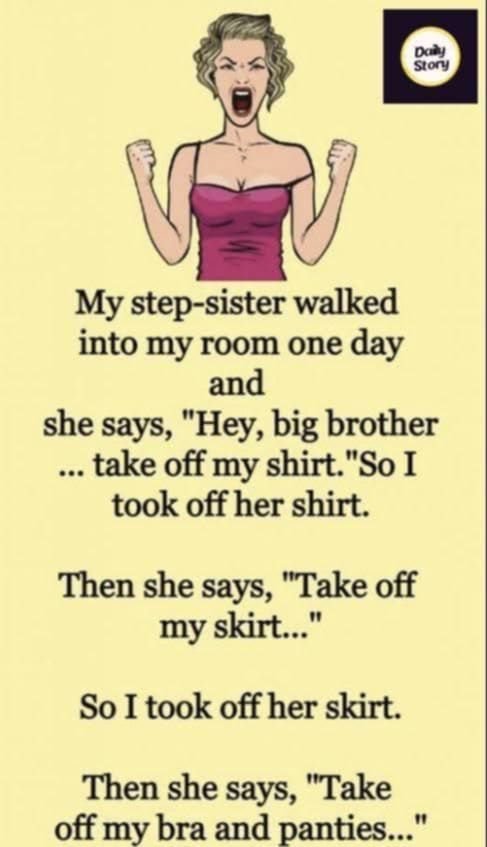 My step-sister walked into my room one day and she says, “Hey, big brother… take off my shirt.” So I took off her shirt. Then