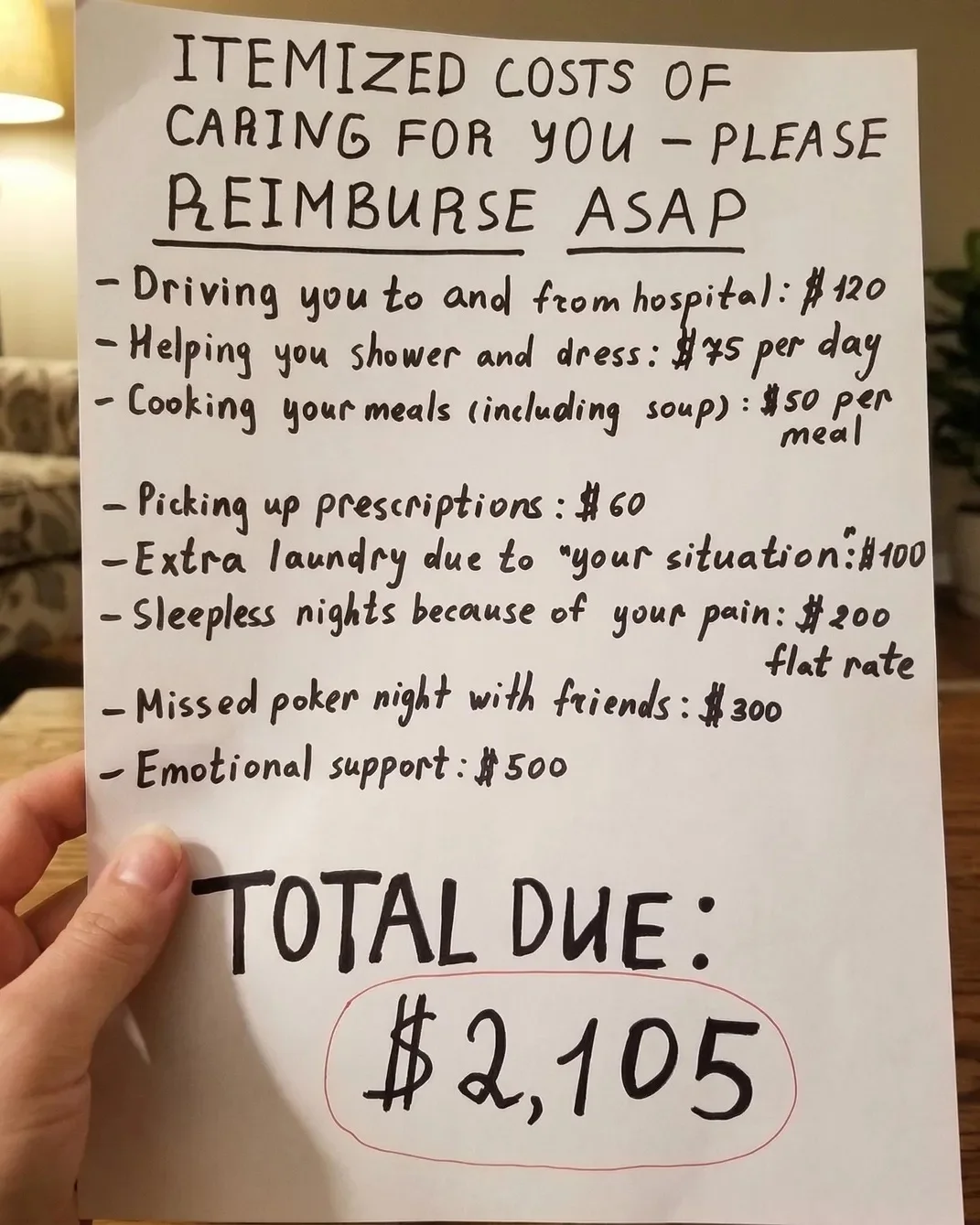 Home from the hospital and navigating a new world of pain and limitation, I found a note that changed everything. On our refrigerator, next to a child’s drawing, my husband had posted a detailed financial accounting of my recovery. Each task, from making a simple soup to taking time off work, was listed with a corresponding cost. I stood there, holding onto the counter for physical support, feeling the last vestiges of emotional support dissolve. For seven years, I had believed we were building a life on a foundation of mutual care. In an instant, that foundation felt like sand.
